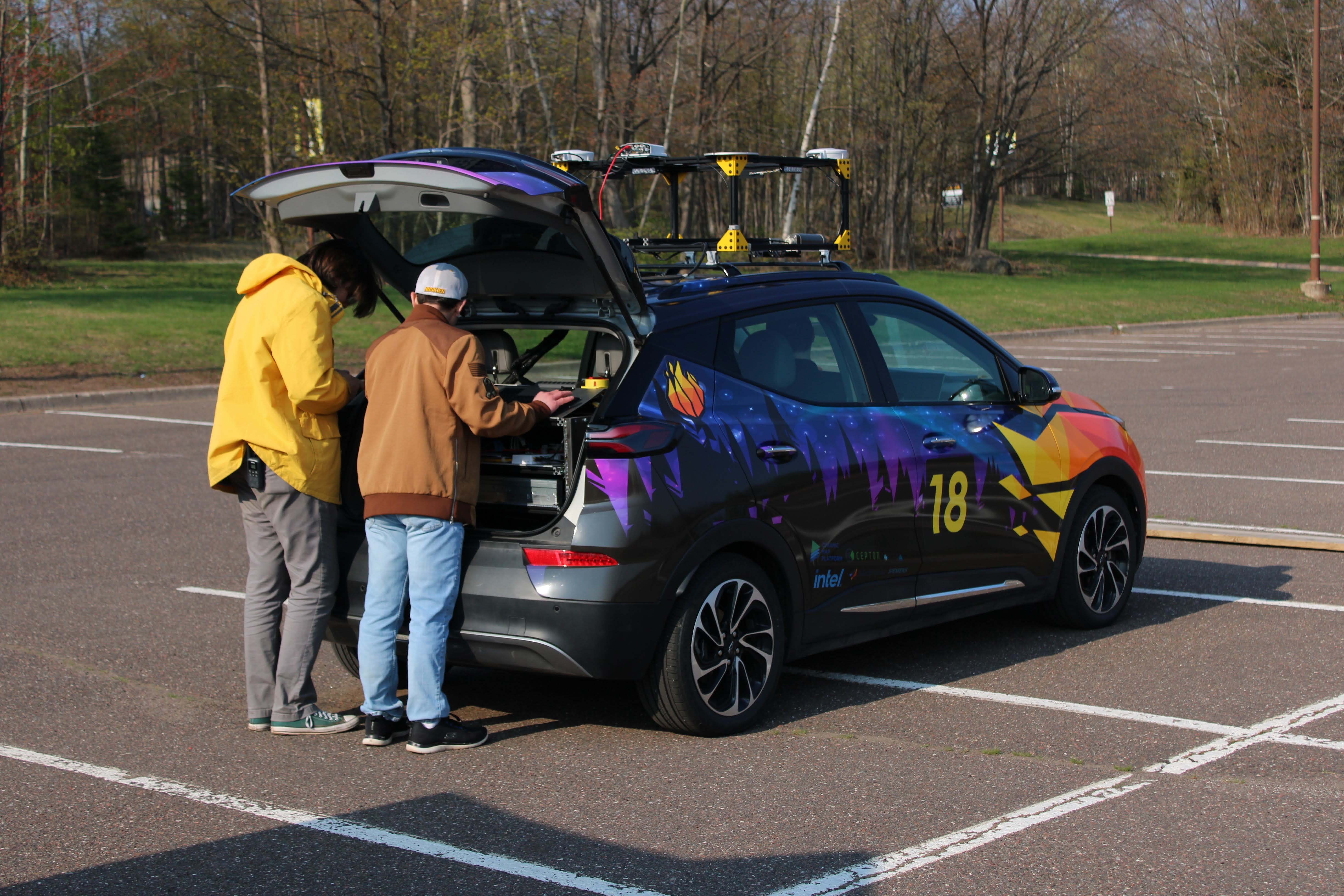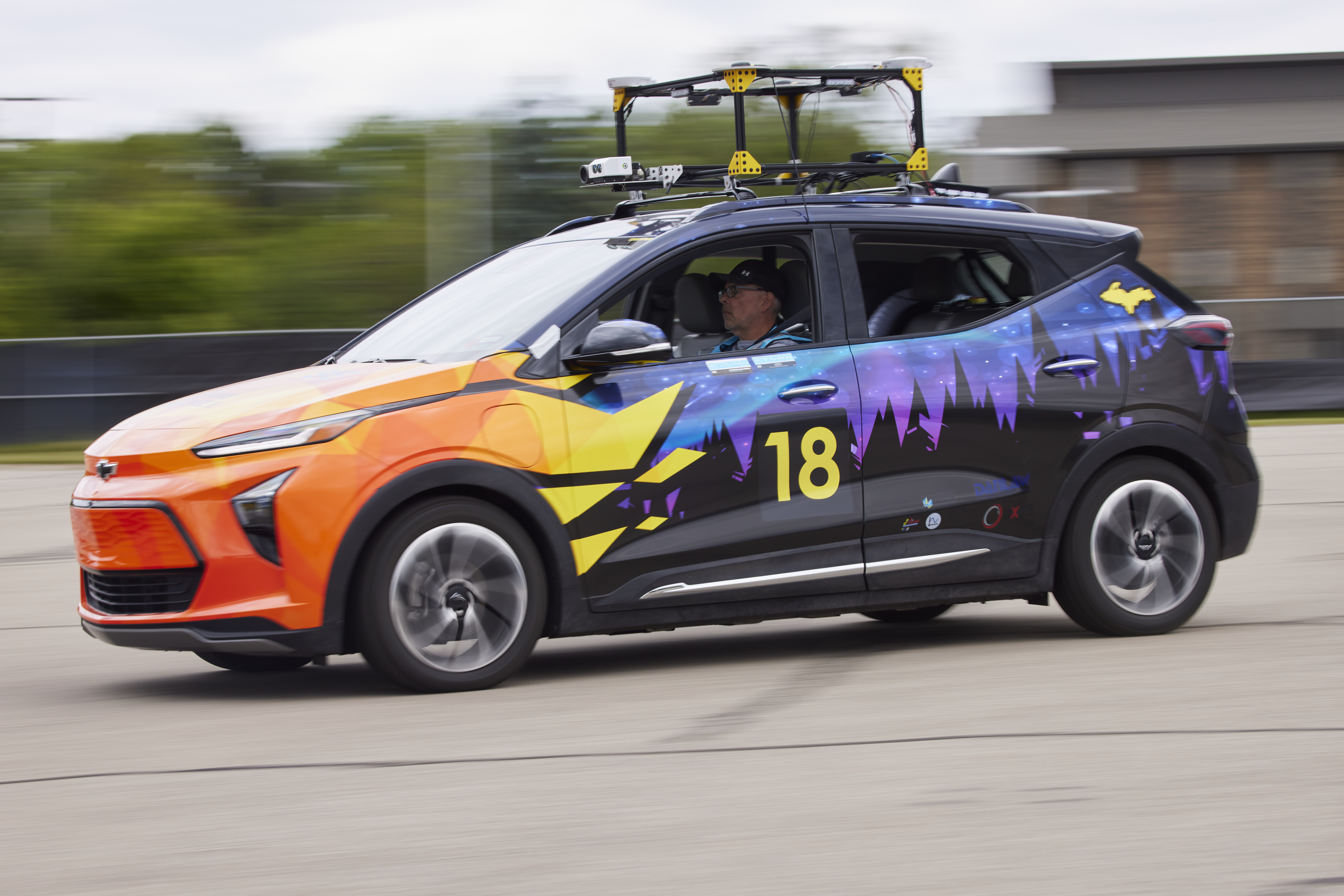 The AutoDrive II Challenge is a GM and SAE sponsored event in which universities receive a stock Chevy EUV Bolt and make it autonomous over 5 years. This edition of the challenge began in 2021 and will be ending in June 2026. Scored challenges progressively get harder as each year passes with topics including base-level object detection and vehicle control, while later spanning to non-gps-based localization and multi-stop trips. Teams then meet in June of each year to compete at University of Michigan's test track, M-City, to compete in the year's given challenges. To see more about the AutoDrive Challenge, please visit the link below.